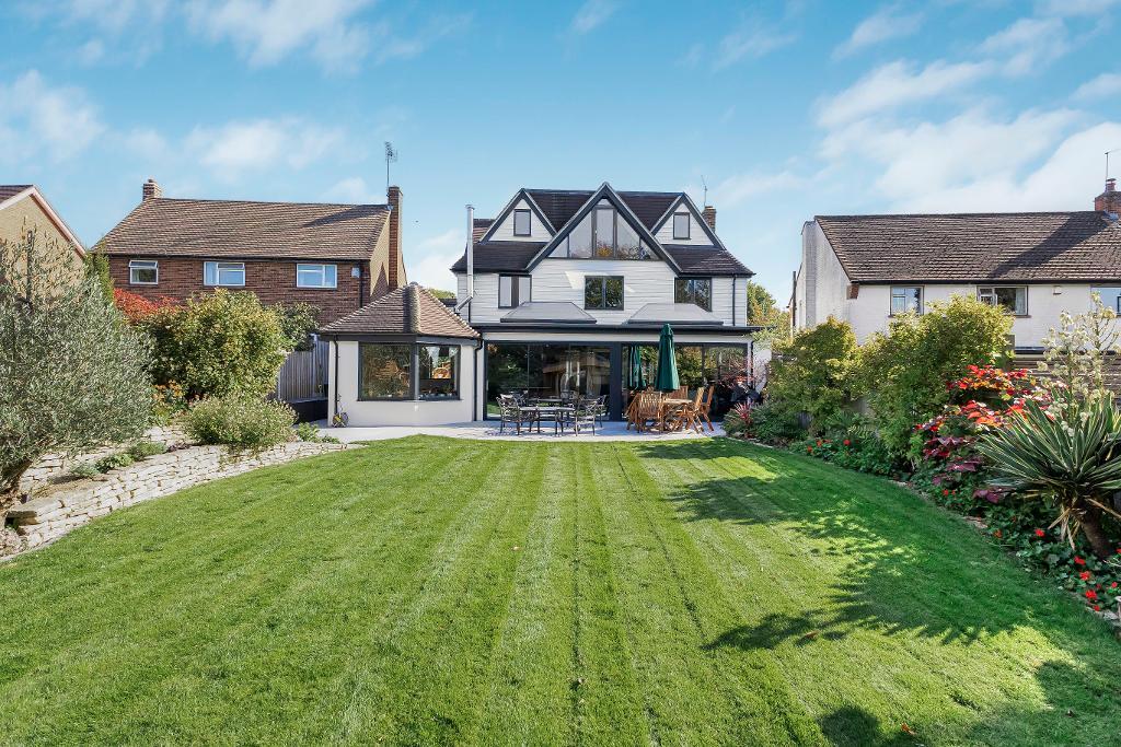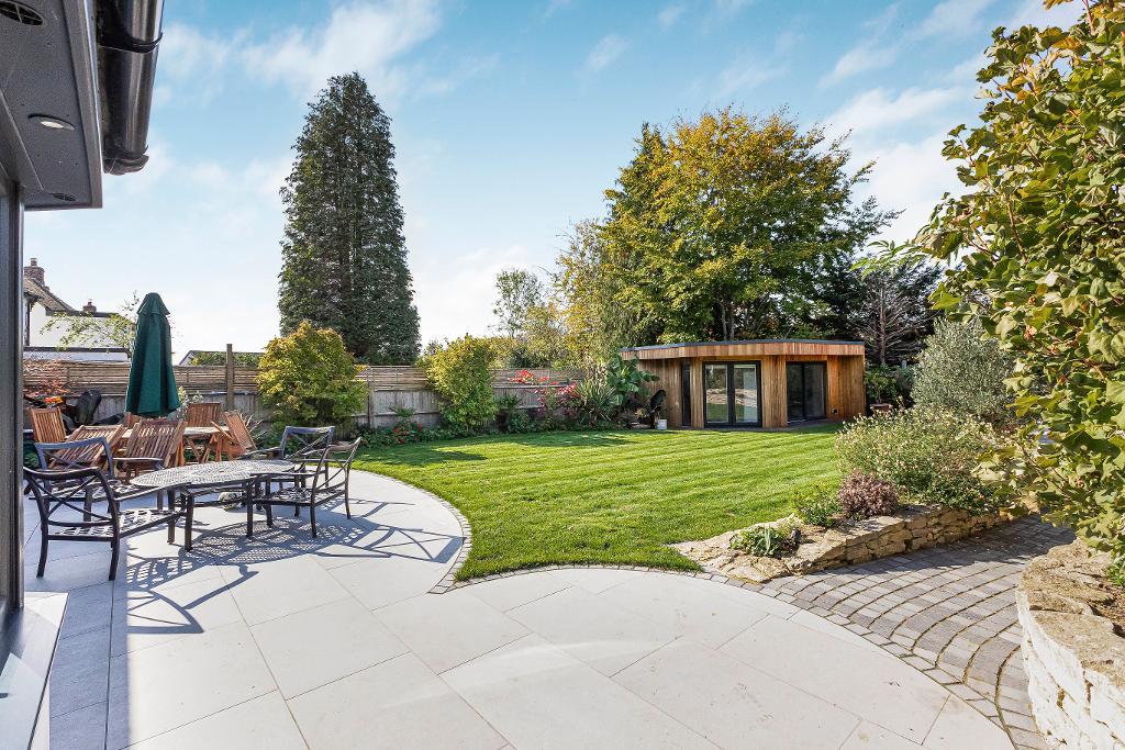 The attractive rear garden is well maintained and a real feature of this property. With gated side access from the front and exterior lighting throughout, large area of lawn, two paved patio areas one with a garden swing chair, two well stocked raised flower beds made from natural Purbeck stone, and a hidden storage area to the rear accommodating a log store, garden shed, bike store and space for storage boxes for cushions and BBQ equipment etc