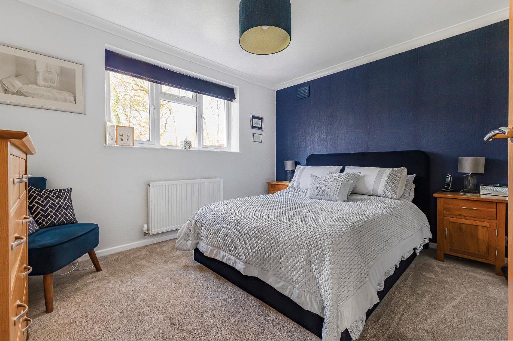 Carpeted with wall hung radiator and double glazed window to front, fitted wardrobes with 3x sliding doors, coved ceiling and solid oak door.