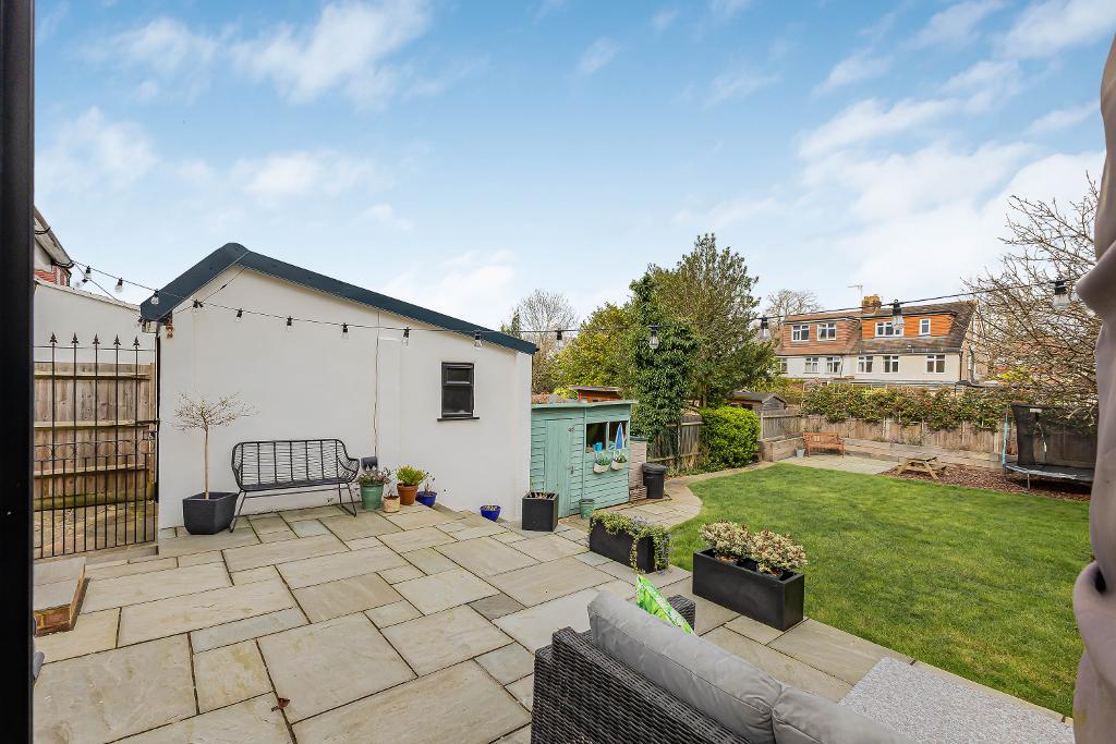 The walled garden to the front provides an area of lawn and paved off street parking. Pedestrian side access to both sides of the detached property gives access to the rear garden. The patio area leads to an area of lawn with mature borders and a further hard landscaped area to the rear provides an additional seating are. Oak sleeper raised beds provide a further planting area. The garden is enclosed and well screened and further offers a storage shed. water tap and external power supply.