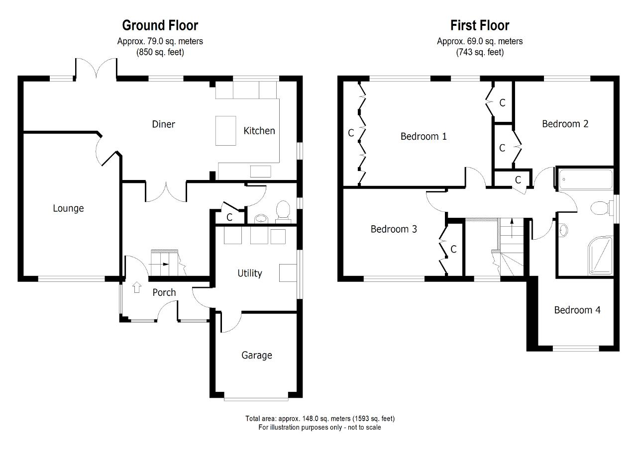 The stylish accommodation comprises a large porch with access to the integral garage (now partitioned for a utility room and storage area), a spacious entrance hall leading to a superb contemporary fitted kitchen/dining room incorporating a study area with double doors leading onto the garden, a lovely reception room and a ground floor cloakroom. To the first floor there is a gallery style landing leading to a superb master bedroom with extensive fitted wardrobes, 3 further bedrooms and a large contemporary style bathroom. Externally there is a southerly rear garden and, to the front, there is parking for 3 vehicles.