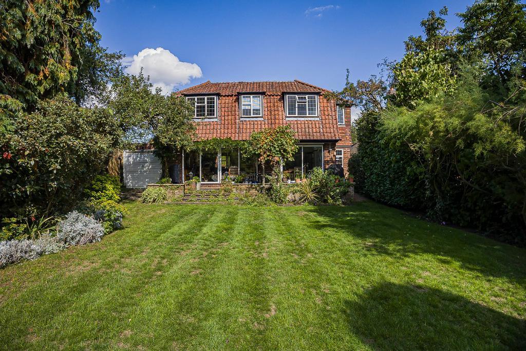 The house, thought to date to 1926, is a detached character residence in a prime Knoll location. Accessed from the carriage driveway and offering a tandem garage, the accommodation has been extended over the years to offer entrance hall, lounge, dining room, garden room, kitchen/breakfast room and cloakroom to the ground floor with principal bedroom with en suite, 3 further double bedrooms, study and family bathroom to the first floor. Externally the extensive and secluded south facing garden is a delight, offering an expanse of lawn surrounded by mature borders, kitchen garden and glasshouse. The property is positioned on a plot of approx.0.23 acre and is offered to the market with NO ONWARD CHAIN.
