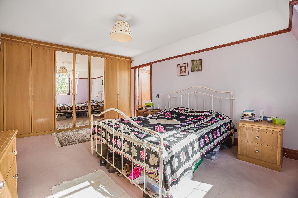 Two double glazed windows to side: range of fitted wardrobes: cupboard housing hot water cylinder: radiator: picture rail.