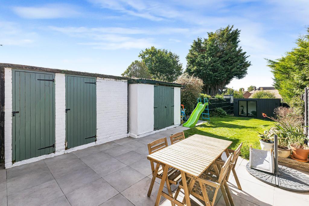 There is a lovely rear garden with a large, non-slip flagstone patio area and then laid to lawn with shrub borders: 3 brick built storage sheds with power: external power point: outside tap: gated pedestrian side access to front.