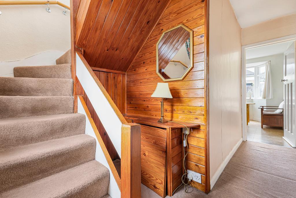 double glazed window to front: under stairs cupboard: meter cupboard: stairs to first floor: radiator: doors to:-