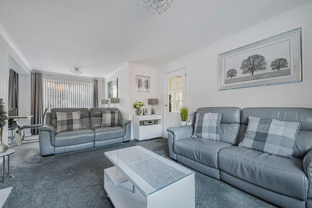 with double glazed window to front aspect: double glazed patio doors and further double glazed window overlooking the rear garden: 2 radiators: coved ceiling: internal access to garage.