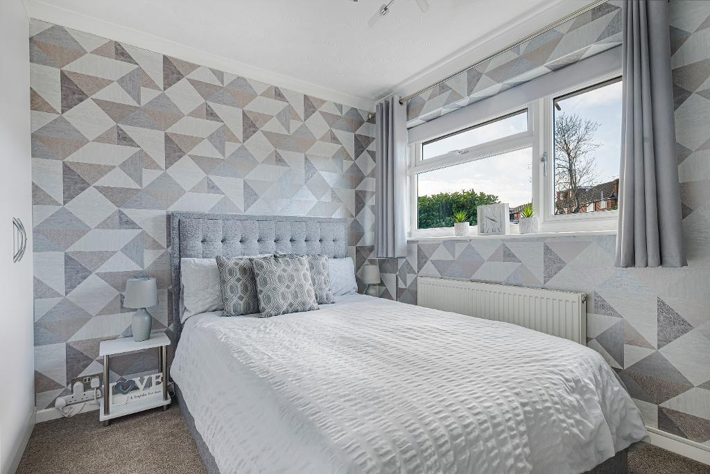 double glazed window to rear: fitted with a range of built-in wardrobes: radiator: coved ceiling.